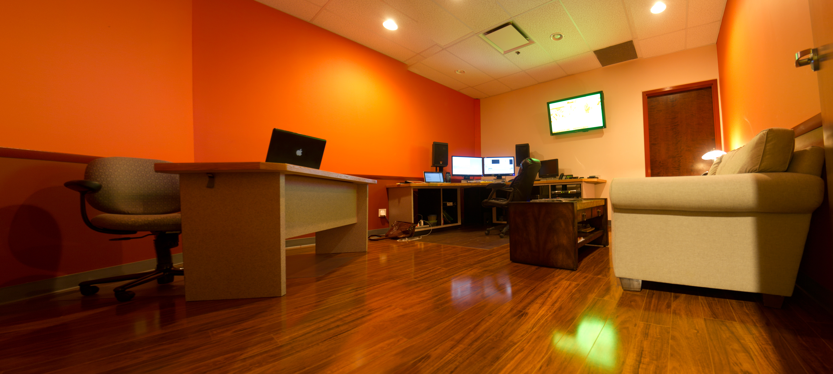 the wide angle makes edit suite 2 look more big like.