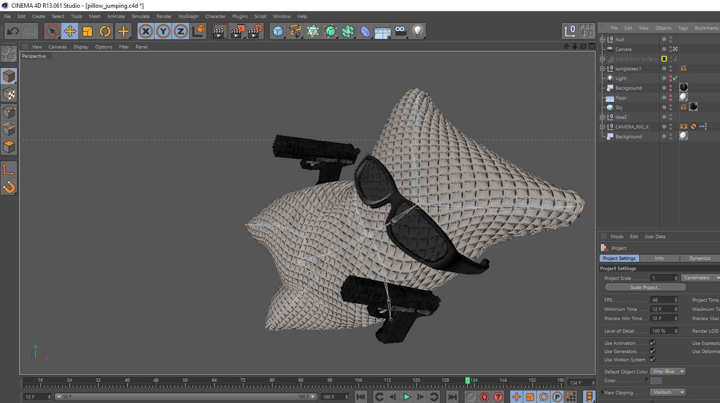 Believe it or not making the pillow model was actually relatively simple. There’s a handy little feature inside Cinema 4D that “shrink wraps” cloth. It’s usually used to fit clothing onto a 3D character, but in this case I was able to shrink wrap a cubes sides in on themselves. The result is a crumpled edge and a bulbous center just like the Tru-Cool pillow! Here’s a great video by MonkeySee explaining the process: